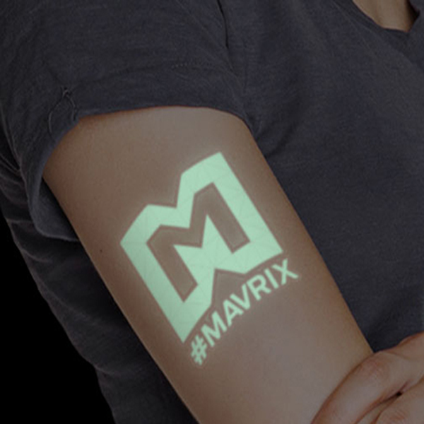 Let your promotions glow with these Glow in the Dark Tattoos! It's a great way to put your message on display -- and let it glow in the dark! These temporary tattoos are great for festivals, nighttime concerts, events, and more! Available with Green ink and Blue ink. Also possible to combine it with CMYK.