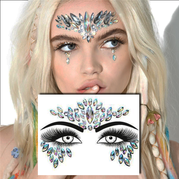 Directions for Use: Remove the jewels from the packaging, carefully peel off centrepiece face jewel and apply to the middle of the forehead.